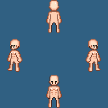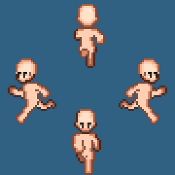 - 4 directions in all animations (except the climbing one direction)